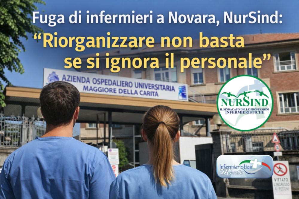 Novara, 10/01/2026. L’emorragia di infermieri all’AOU Maggiore della Carità di Novara non è una percezione, ma un dato di realtà che il NurSind, sindacato delle professioni infermieristiche, denuncia da tempo con numeri e fatti. Di fronte alle recenti dichiarazioni del direttore generale Scarpetta, che annuncia una riorganizzazione e 30 assunzioni a tempo determinato, il sindacato replica con fermezza: così non si ferma la fuga di professionisti. Anzi, senza interventi strutturali e concreti, il rischio è che la crisi diventi irreversibile.