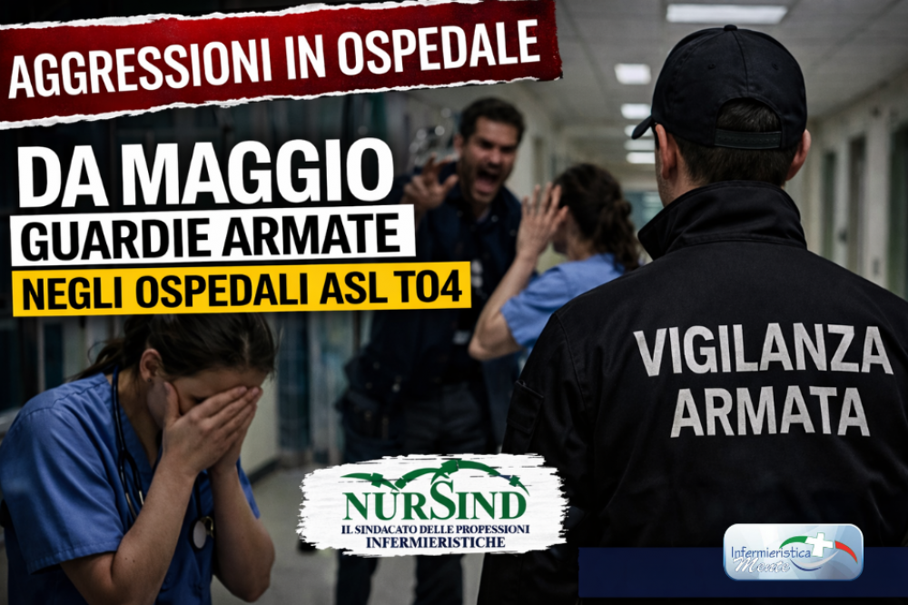 Aggressioni sempre più frequenti contro infermieri e operatori sanitari: dal 1° maggio vigilanza armata nei presìdi di Ivrea, Chivasso e Ciriè. Il NurSind rivendica il risultato ottenuto dopo mesi di denunce.