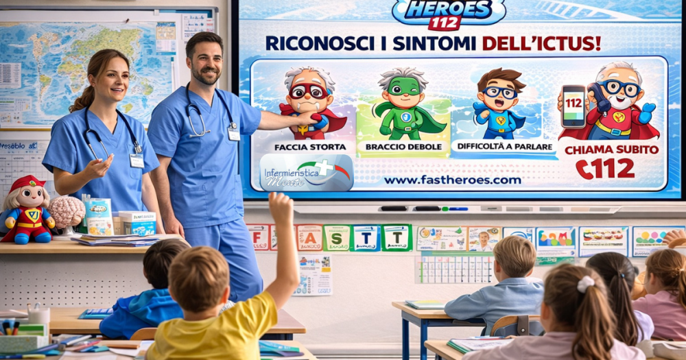 Alla scuola primaria Valchiusa di Pescia, imparare può voler dire salvare una vita. È qui che ha preso il via il progetto internazionale “Fast Heroes 112”, un percorso di educazione sanitaria che trasforma i bambini in piccoli ambasciatori della salute, capaci di riconoscere i segnali dell’ictus e attivare tempestivamente i soccorsi. Ma dietro questa iniziativa c’è soprattutto il lavoro degli infermieri, protagonisti di un’azione educativa che esce dalle corsie ospedaliere per entrare direttamente nelle scuole.