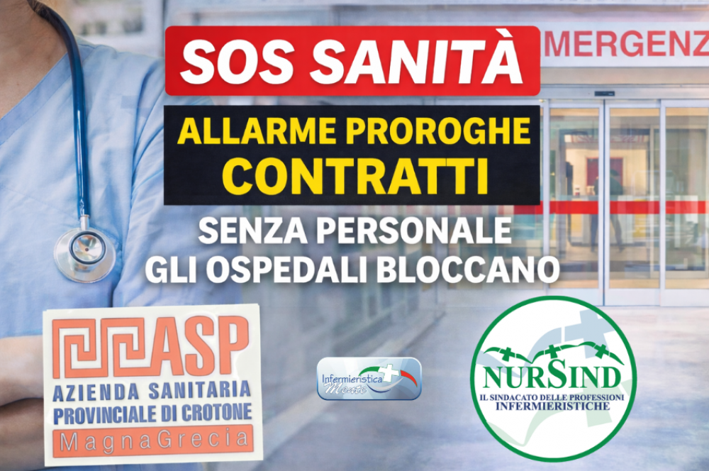 22/02/2026. All’ASP di Crotone la situazione è critica e destinata a peggiorare se non verranno assunte decisioni urgenti. Molti servizi ospedalieri risultano già oggi sotto pressione e il rischio concreto è che, nelle prossime settimane, la tenuta complessiva dell’assistenza venga compromessa dalla mancata proroga dei contratti a tempo determinato di infermieri e operatori socio-sanitari, in scadenza il 31 marzo 2026.